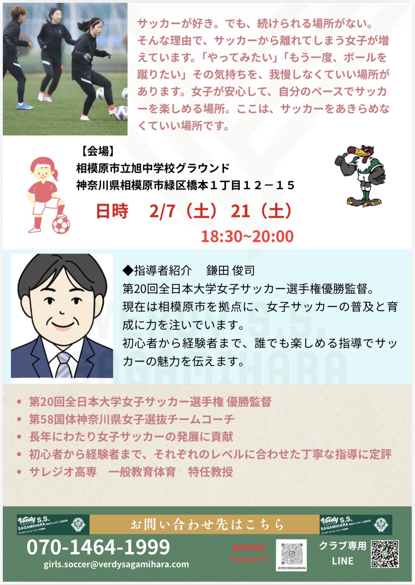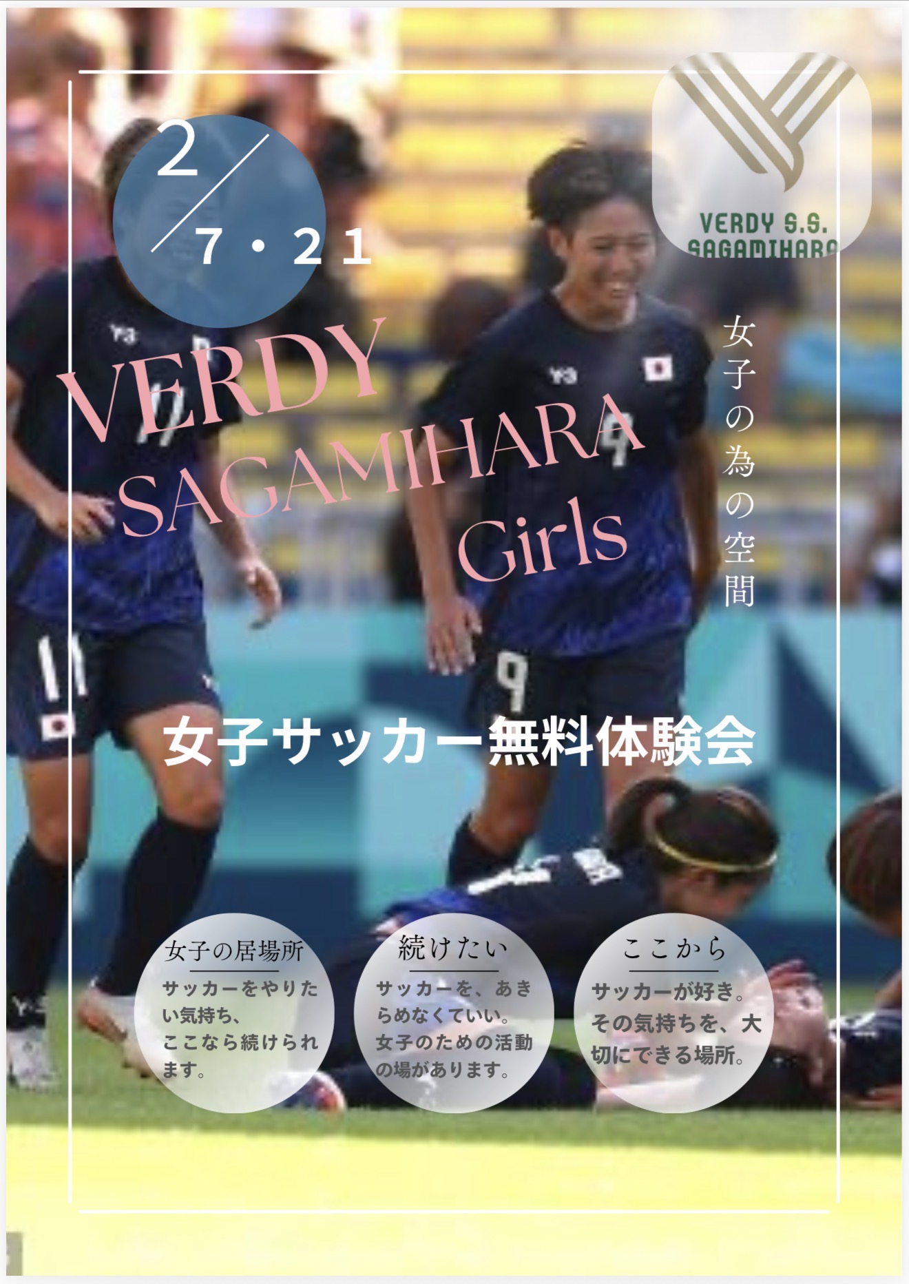 女子サッカー普及のために立ち上げたヴェルディ相模原ガールズ、現在女子サッカーは活動環境が少なくやりたいけど場所がないそんな女子の為に作ったヴェルディ相模原ガールズです。