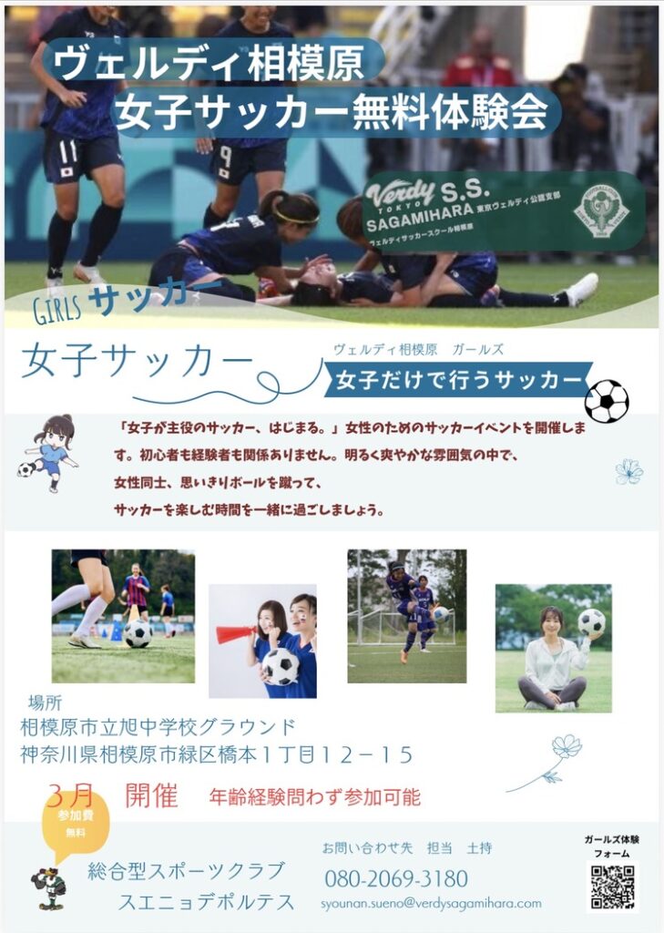 女子サッカー普及のために立ち上げたヴェルディ相模原ガールズ、現在女子サッカーは活動環境が少なくやりたいけど場所がないそんな女子の為に作ったヴェルディ相模原ガールズです。